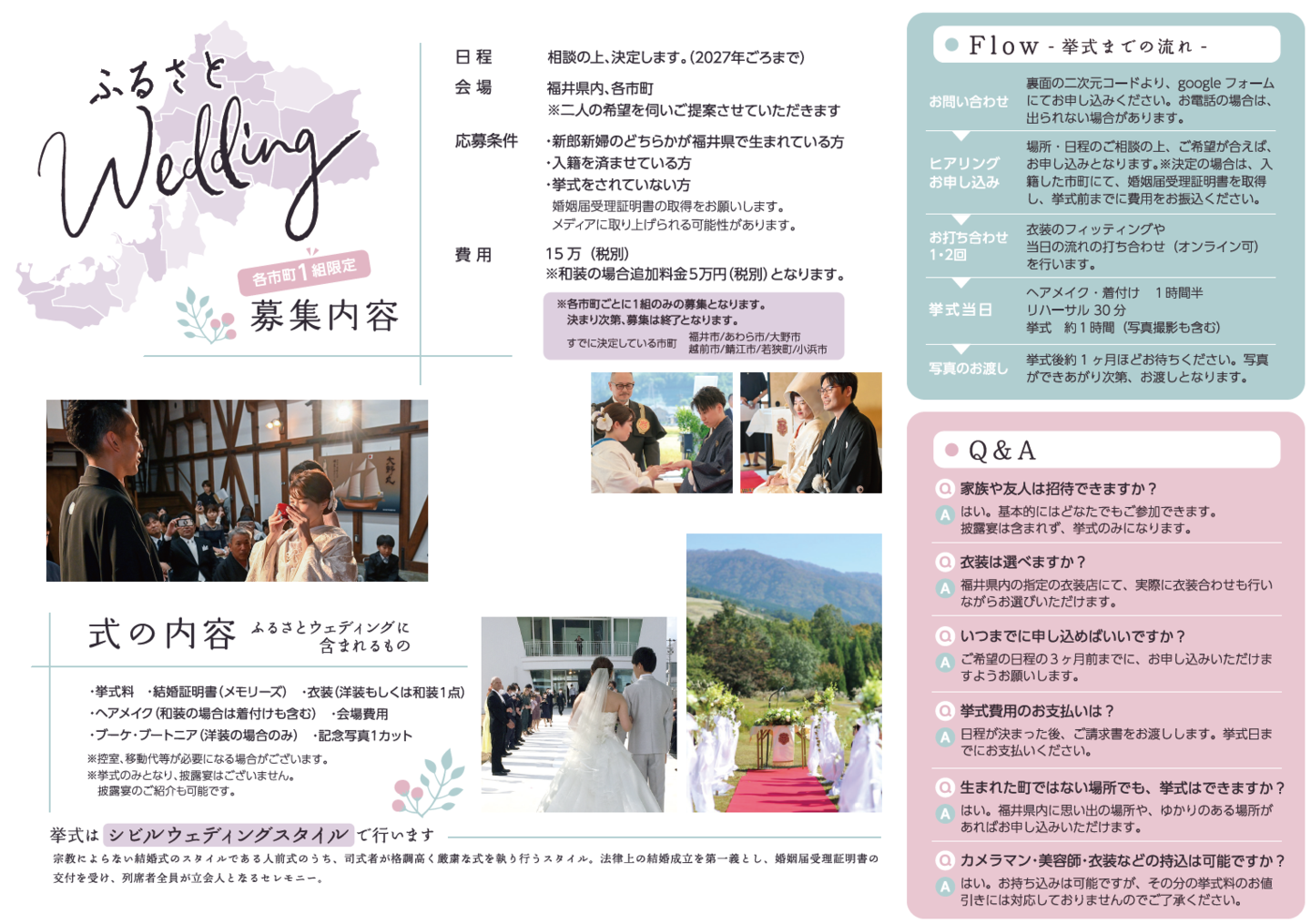 残り8組! 勝山市、永平寺町、池田町、南越前町、敦賀市、美浜町、おおい町、高浜町での挙式が可能です